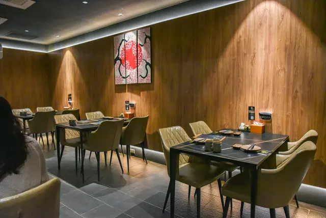 桀壽司用餐環境寬敞舒適,大量的木質設計,加上櫻花樹充滿濃濃的日式氛圍。