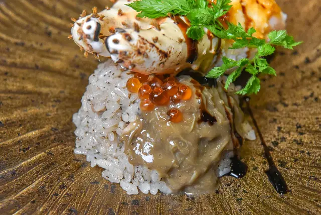 炊飯搭配濃郁的蟹膏及鹹香多汁的鮭魚卵,充滿海洋的鮮味,讓人實在太滿足了!