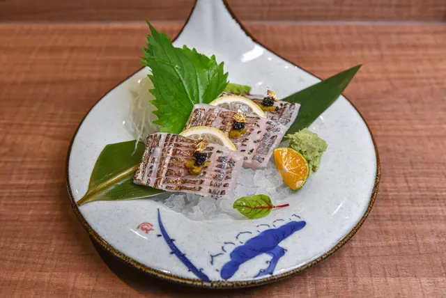 白帶魚刺身的肉質軟嫩細緻,還有迷人的炙燒香,加上魚子醬讓鮮度更上一層樓~