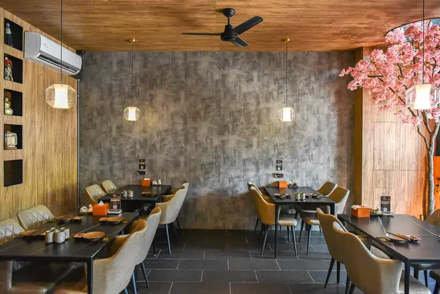 桀壽司日本料理用餐環境寬敞舒適明亮,以木質元素打造的環境,加上櫻花樹點綴,很有在日本的東洋氛圍。