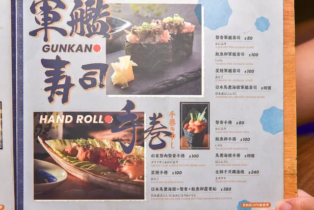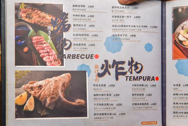 含:前菜、刺身、握壽司、蒸物、炸物、烤物、甘物