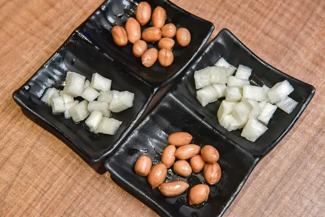 胡麻豆炸干貝真的超!好!吃!比50元硬幣大上很多的干貝以米果炸到香氣四溢,軟嫩的干貝加上脆脆的米果很有層次,底下的胡麻豆不加一滴水、使用濃醇的胡麻醬製作而成,口感軟綿綿的,加上脆脆的紫蘇葉超級搭~