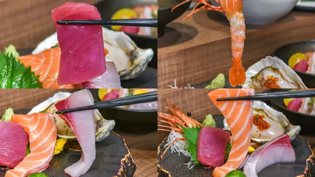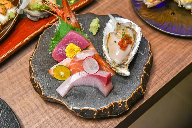 刺身:熊本生蠔、日本青甘肚、鮭魚肚、鮪魚、牡丹蝦