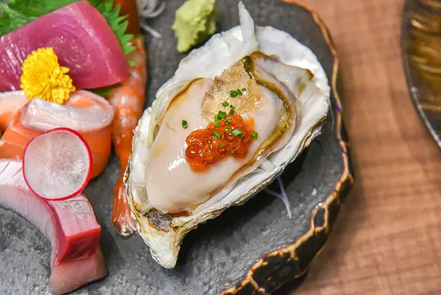 尺寸不小的熊本生蠔超級肥美又多汁,而且也很新鮮,搭配鮭魚卵,鮮味一整個大爆棚!