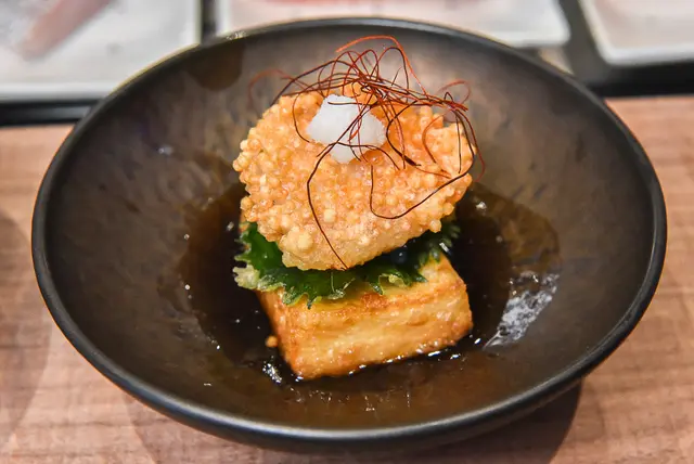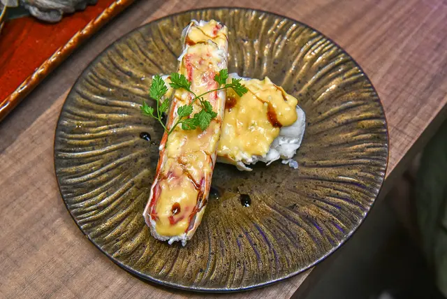 一整條的鱈場蟹吃起來超過癮,加上溫潤香甜的海膽醬,讓人每口都很享受,喜歡吃螃蟹的朋友必點$2,580這個價位的無菜單料理!