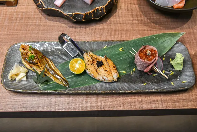 比目魚鰭邊肉、星鰻也都以炙燒方式來料理,比目魚鰭邊肉充滿火烤的迷人香氣,加上入口即化的肉質讓人意猶未盡!而星鰻口感非常細緻,沒有絲毫異味,也一樣好吃!