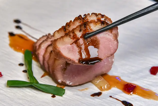 和風舒肥櫻桃鴨肉,肉質扎實有濃濃的鴨肉香,但吃起來完全不會柴!加上QQ的鴨皮,不論是口感還是香氣都很豐富,加上巴薩米克醋吃起來更清爽!