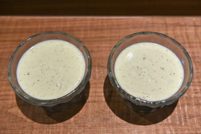 甜點是店家製作的手工芝麻奶酪,質地介於奶酪與優格之間,不論是奶香還是芝麻香都很濃郁,真的很好吃!
