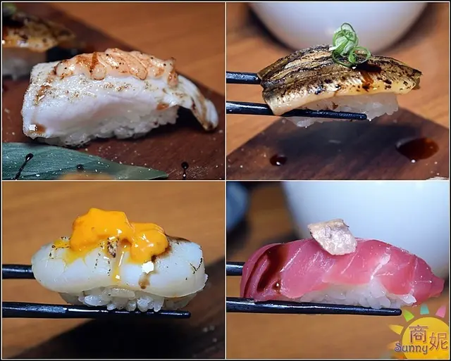 干貝海膽握壽司 生食級大干貝本身就很軟嫩,加上鮮甜的海膽醬甜上加甜好享受啊~