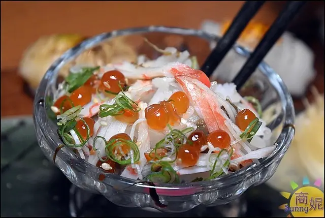 散壽司 以松葉蟹膏為基底,加上鮭魚卵、蟹肉、跟甜甜的醋飯一起吃好好吃喔~