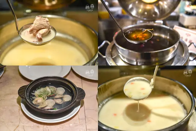 湯品有四寶湯、養氣人參茶、薑絲蛤蜊湯、玉米濃湯。