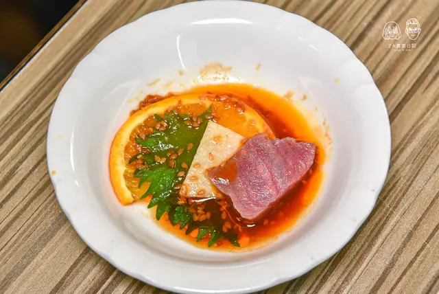 櫻桃鴨胸佐陳年老酒醋的肉質軟嫩且香氣十足,一點也不柴,搭配老醋的調味帶點微微的酸感,這道我自己也很喜歡,熟魚卵的風味很濃郁,我覺得配啤酒還滿合適的。
