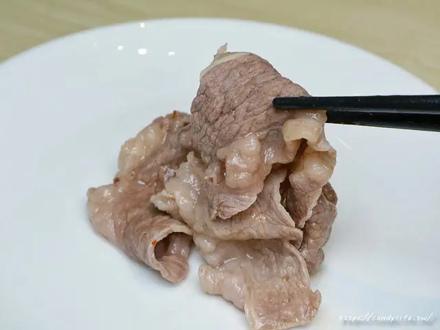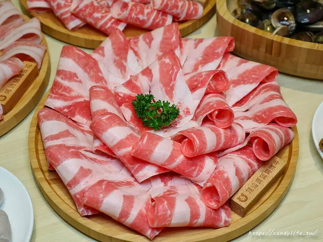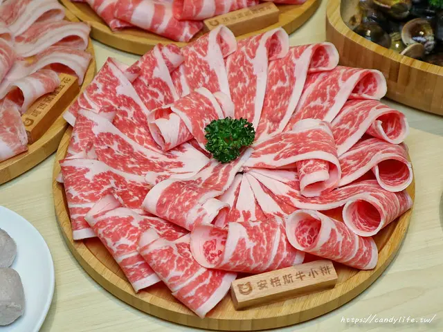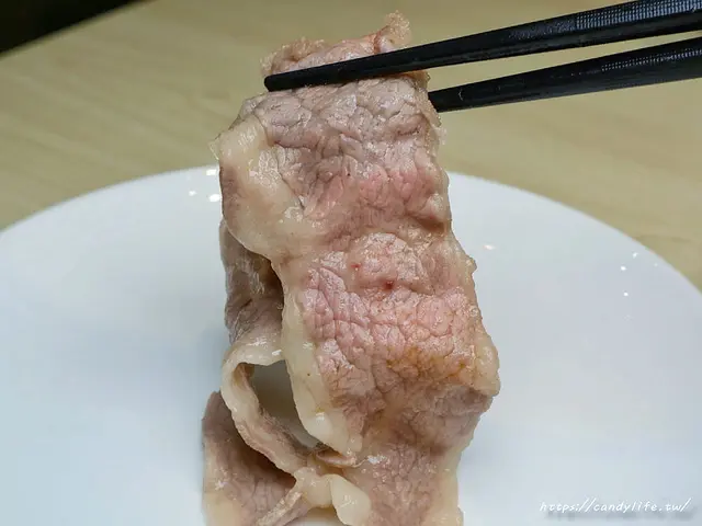 另外糖糖還單點了一份頂級美國霜降牛,油花均勻宛如大理石紋路,跟剛剛的安格斯無骨牛小排一樣只需要輕涮個幾秒鐘就可以品嘗了