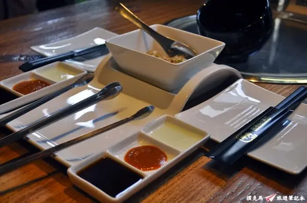 使用洗手間的同時,撲克馬發現洗手臺旁放置了不少的盥洗用品,這樣的貼心設計,倒是第一次遇見。洗手臺旁放置了男性的洗面乳等用品。還有牙刷、牙膏、漱口水等等。而女性的洗手間,更是貼心準備了一卡化妝箱,補補妝應該是沒問題。入座前服務人員已經將用餐器具備好於桌面,其中包含了餐廳自製的涼拌洋蔥、沾醬等等。
