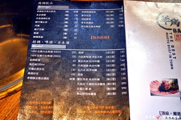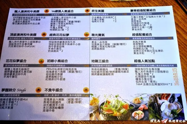 羊角BAR炭燒和牛專門提供了組合式的餐點,每種組合的名稱皆取得相當有創意,其中有「米」字的代表附白飯、而「專」字代表附上生菜做搭配。