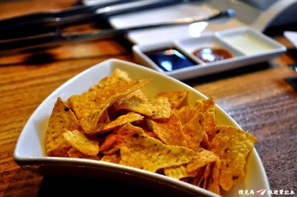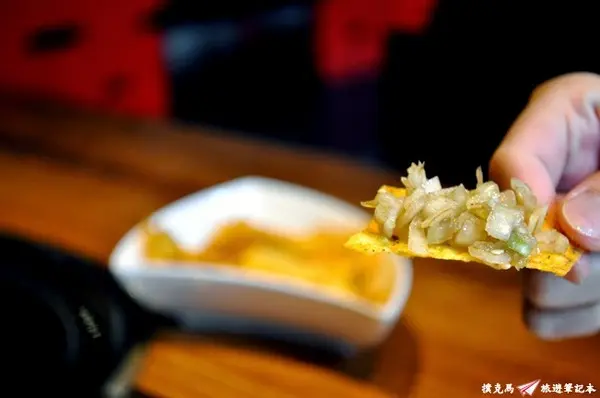 招待的餅乾,一眼就能看出這是多力多滋,心裡想著有無特別之處的同時!?服務人員提醒可以搭配著一旁的洋蔥使用。