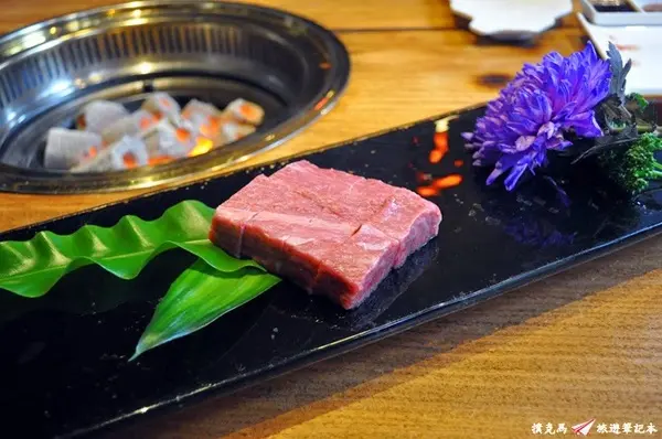 看著燒烤爐裡的和牛,油脂蠢蠢欲動,透過專業服務人員的桌邊服務,將肉片燒烤約5至7分鐘,將可品嚐到最好的肉片口感。