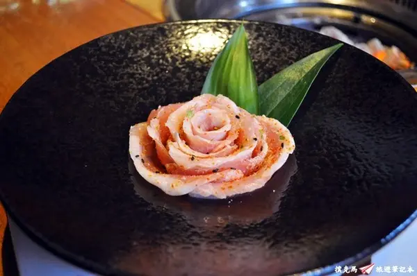 這道料理肉可以選擇椒鹽或櫻花口味,而我們選擇了櫻花口味,服務人員提醒櫻花口味微帶點辣度。將豚肉擺成玫瑰狀,不但創意十足,賣相也加分!