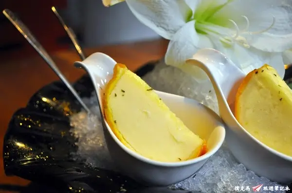 甜點的擺盤仍然是相當吸睛,服務人員還特別解說這道冰淇淋品牌媲美Goldstone(酷聖石)與Haagen-Daz(哈根達斯),而且熱量只有它們的三分之一,聽到這點,撲克梅的嘴角就微微翹起來啦!