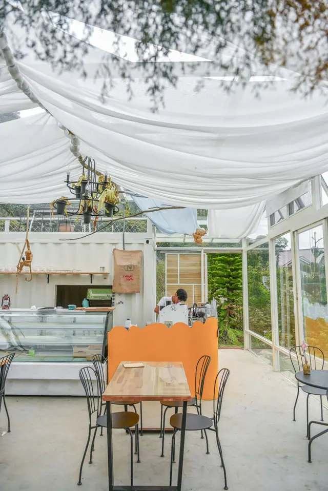 往後頭看過去就是戶外野餐區,一樣使用可愛的三角旗及紗網來裝飾,午後在這吹著微風用餐也很舒服。