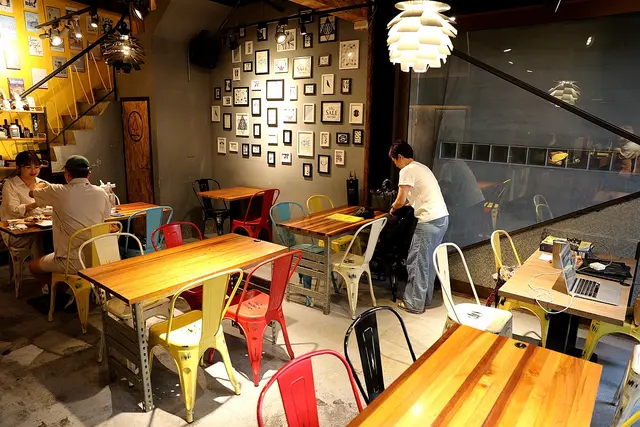 帶有濃濃老宅風味 保留復古舊窗戶設計 搭配上鐵製高腳椅 增添了不少懷舊風