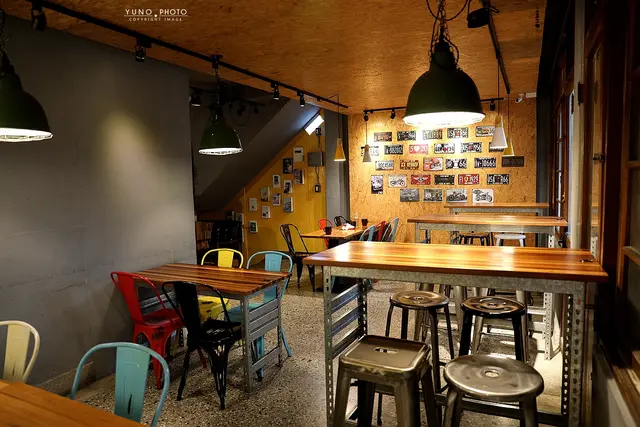 店內用餐空間分成一、二樓 一樓整個工業風格的裝潢 有些美式頹廢感