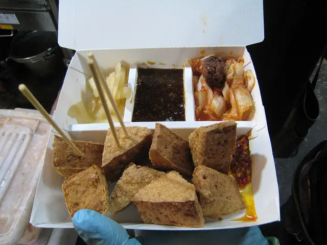 中間的是蒜蓉醬,臭豆腐沾著吃,十分夠味