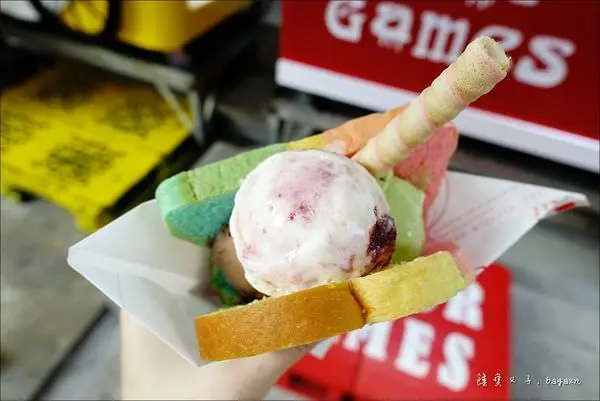 色彩繽紛又可口的三色吐司夾冰淇淋吸睛特別,