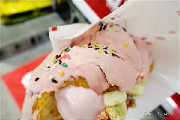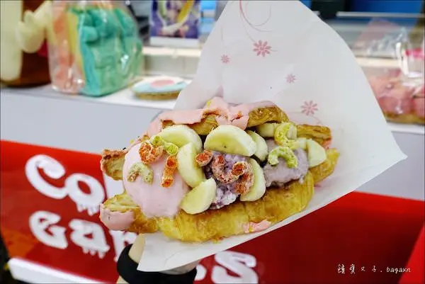 最上面再大器的疊上一個香甜彩虹可頌,迷你版的可頌可以自選一種冰淇淋夾入,