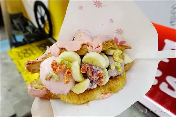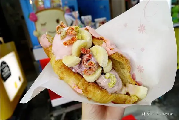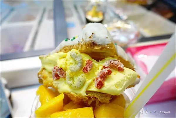 彩虹可頌一樣可以選擇三種口味的冰淇淋,裡面還夾入季節水果及彩虹麥片,