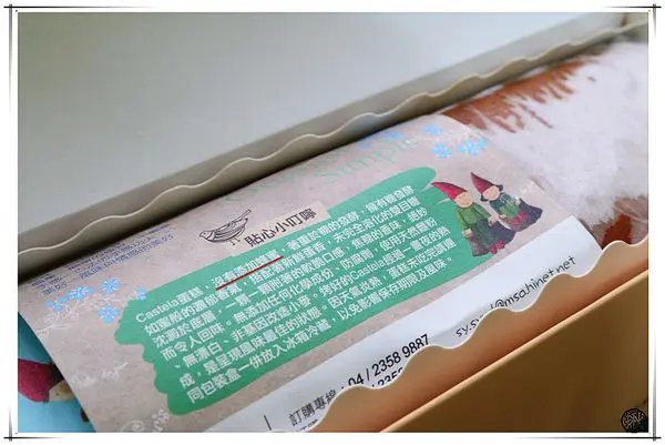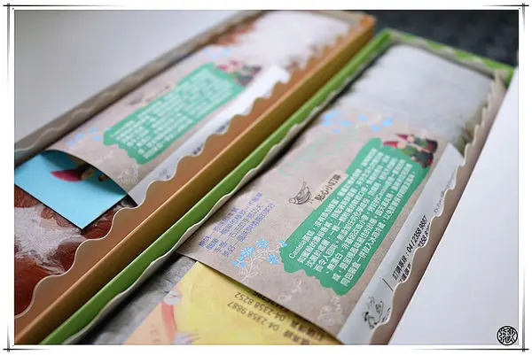 阿揪忘記是在盒子上還是紙上,有寫保存期限,大約是三至四天左右,請連同包裝盒一併放入冰箱冷藏,以免影響風味。外盒上寫著,不添加化學色素和人工味精,使用工廠直送無抗生素的雞蛋與天然麵粉及非基因改造的小麥(這都不是阿揪自己說的拉XD)。