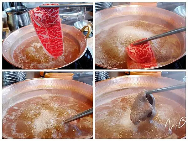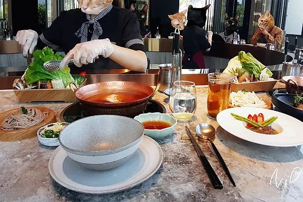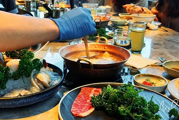 同意的話,店員會在直接站在圍桌內圈,用餐夾幫忙把食材丟 擺進鍋中