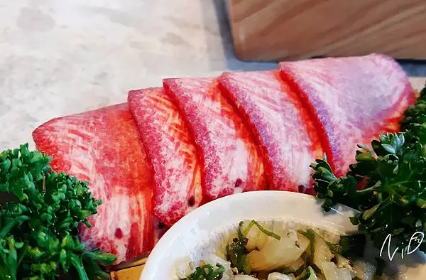 牛隻油脂含量高且油花分布均勻飽滿,肉質呈紅白相間,整體看起來紅偏粉紅