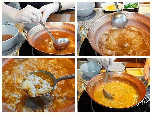 ▲要現場用湯底熬成一鍋粥果然還是需要時間