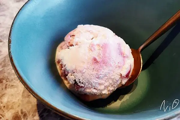 分別是由草莓、黑莓和黑醋栗等做成口感似雪酪的野莓冰,搭配優格冰