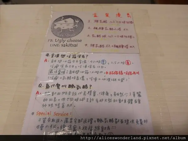 這是一些醜乳酪的說明~雖然是手寫但是寫的都超可愛~