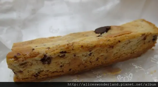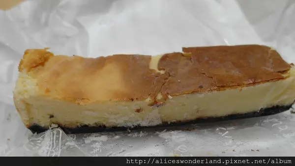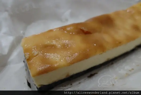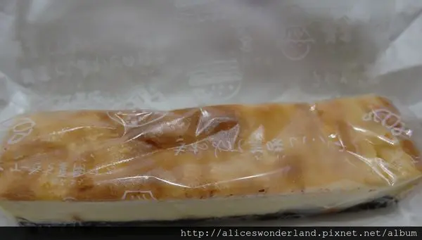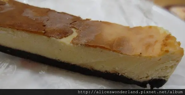 來看看這個被我們吃到一半的綿密乳酪條側面照,