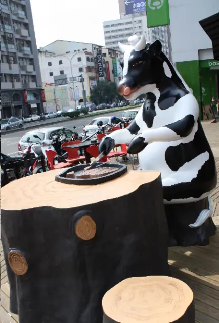 還有雕像是一隻眼睛很瞇的牛切著自己同伴的肉
