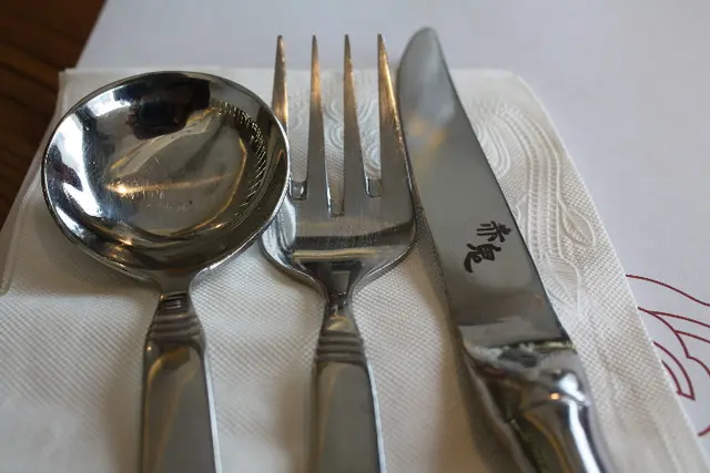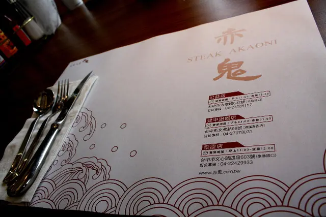 餐具湯匙刮痕還滿多的,刀子上有印上赤鬼logo