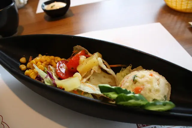 沙拉看起來還算認真的一道(有些店家放幾片生菜和和風醬就說是沙拉了)