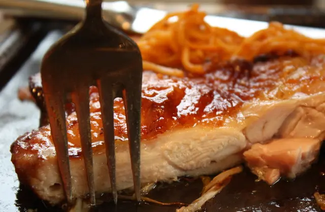 而肉的味道上感覺好像有泡過鹽之類的,因為我覺得單吃肉不吃皮是鹹的