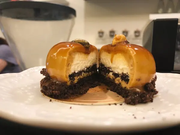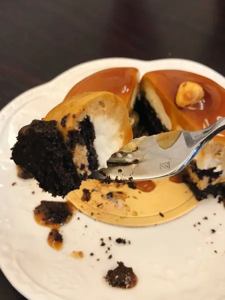 先挖一口嚐嚐,外層焦糖香草淋面! 有種奶油太妃糖