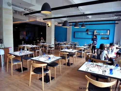 室內有兩個區塊,一區比較明亮自然北歐風,那片藍色的牆