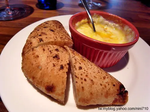 茶,簡單的披薩老麵團去烘烤而成的,充滿Q勁,淋醬是蛋