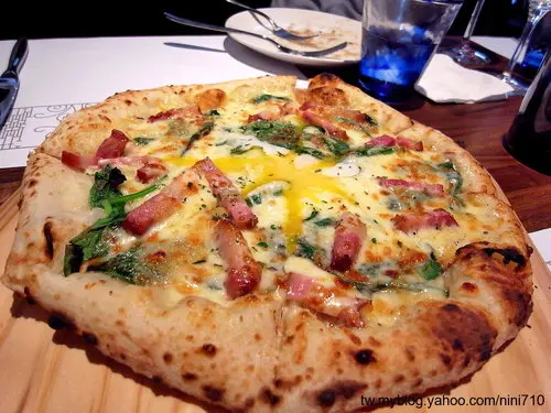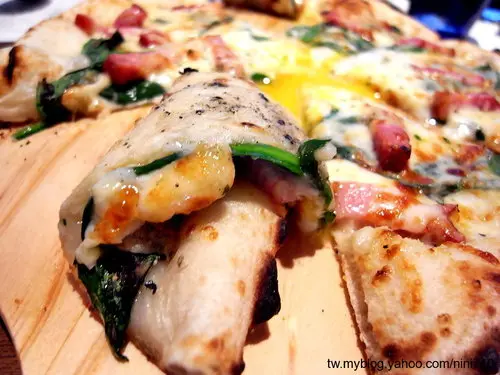 由蛋汁、波菜、培根所組合而成的佛倫提那批薩,這裡的披