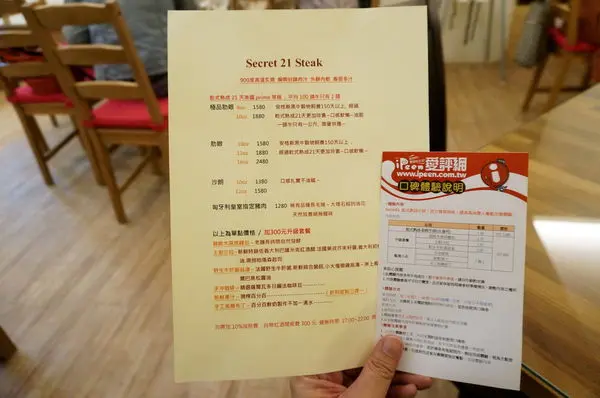 Secret 21 位於台中向上路與東興路交界口, 招牌很醒目易見, 另外由於店面不大, 所以他們是接受預約客人為主. 現場可能要來碰碰運氣囉. 至於為什麼店面不大? 緣由是老闆原本是以銷售生的熟成牛排給客人外帶回家, 所以店面2樓是百萬級熟成牛排設備. 但眼見有一些客人買回家後自己處理不夠精細, 可能就沒法引出熟成牛排的美味, 再加上朋友"勸說", 老闆就將一樓店面改裝為用餐區, 透過老闆多年來熟成牛排經驗來展示給客人用餐