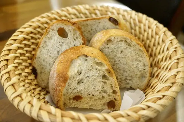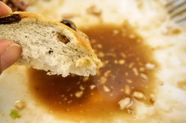 龍眼木窯烤麵包, 吃起來像歐式麵包口感, 麵包吃起來還蠻綿密的, 裡面還有一些葡萄乾, 感覺很養生呢XD 小米是吃到一點點紅茶香味, 不知是否是木香所造成的, 用來佔紅酒醋還不錯吃. 試過沾他們的湯倒是還好. 可以跳過