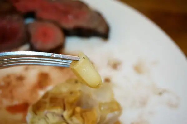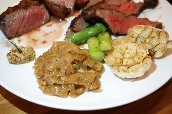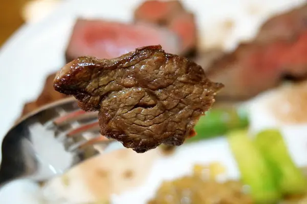 這個炭烤色是不是很誘人呢? 小米吃起來乾式熟成牛排與濕式差別在於乾式牛肉風味真的更為野性, 看似沒有血水, 咬起來卻是多汁軟嫩, 天然酵素也提昇了牛肉風味呢~