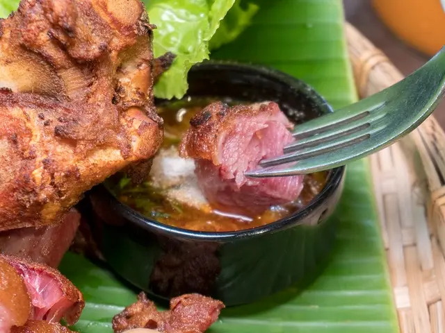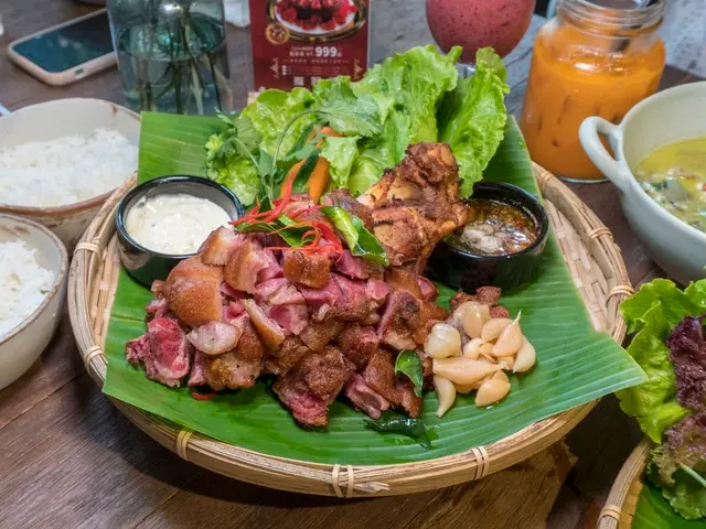這道料理是Thai J 泰式料理近期的新菜色,一整隻的豬腳霸氣外露!!豬腳先小火慢滷、在大火現炸,呈現出來的口感外酥脆內紮實,入口香氣沒話說。店家提供了檸檬葉、主廚特製醃蒜頭等等可以搭配著享用。