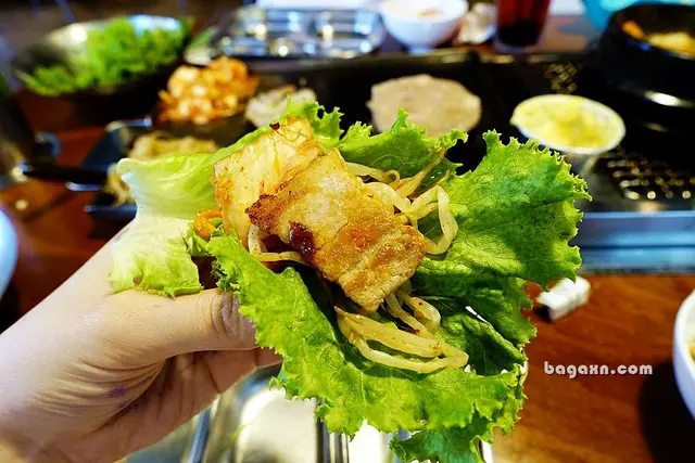 吃法很多元,要直接吃肉也可以,或是依照個人喜好去搭配配菜與生菜,將烤好的三層肉夾包好享用!原味三層肉烤起來香氣十足,不會有油腥味,單吃也不會覺得膩口,不過搭配生菜會更加清爽可口。